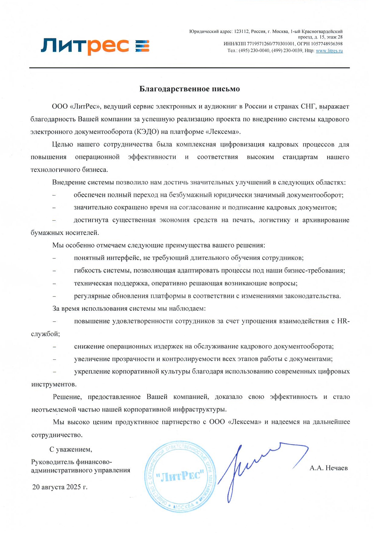 Компания ЛитРес поделилась своим опытом использования Лексема-КЭДО!